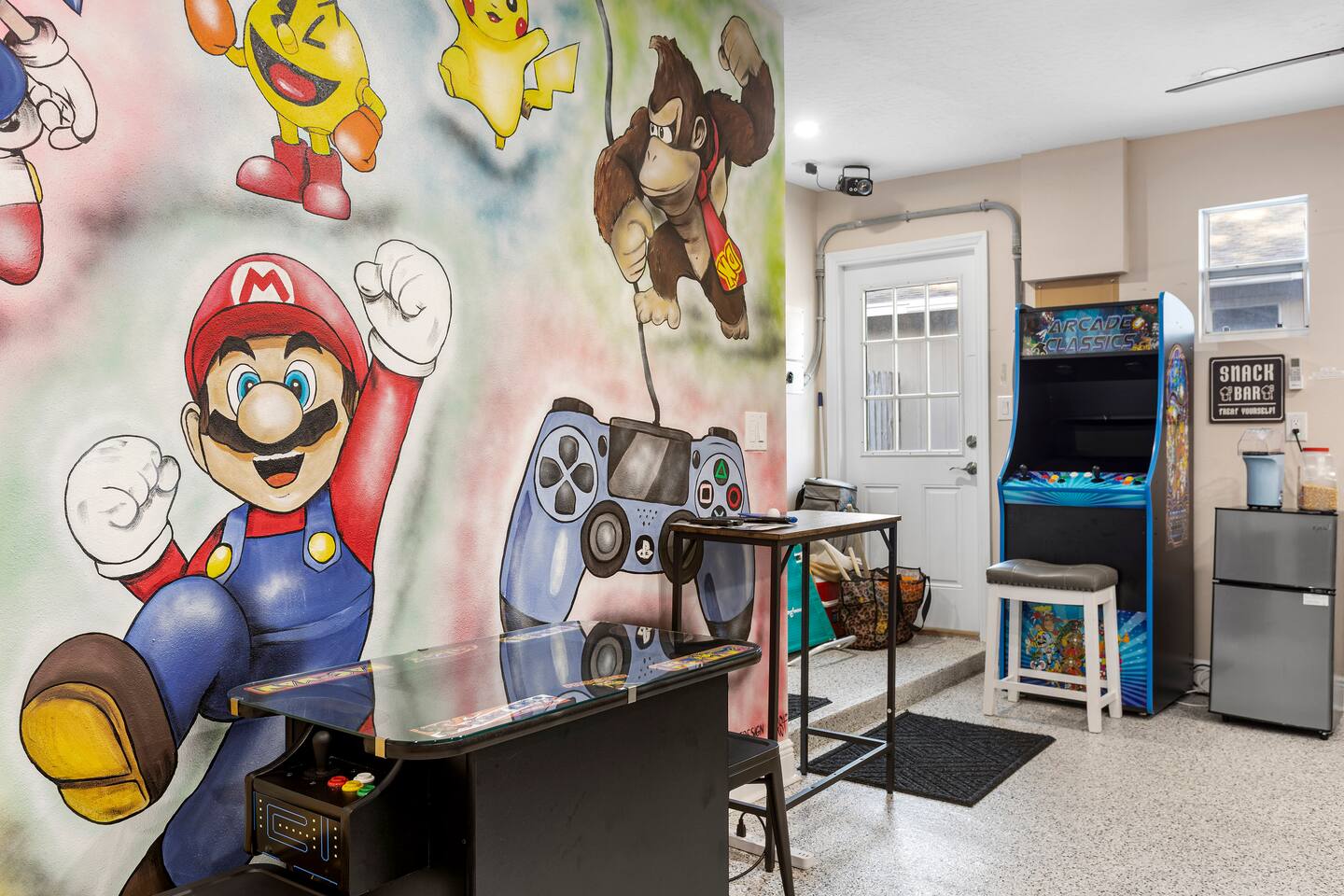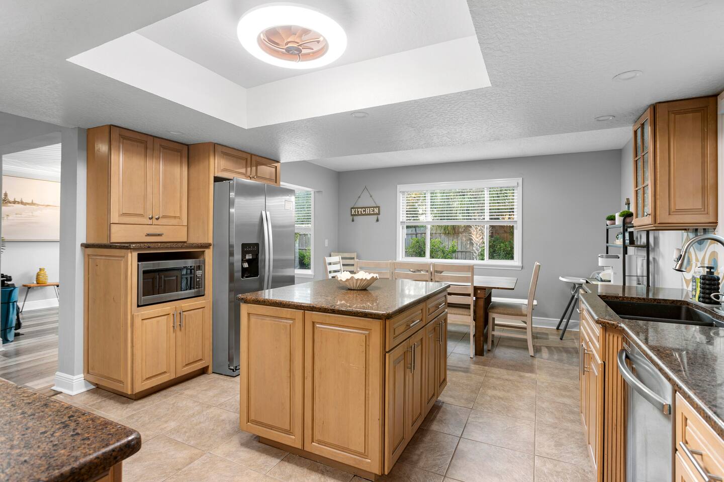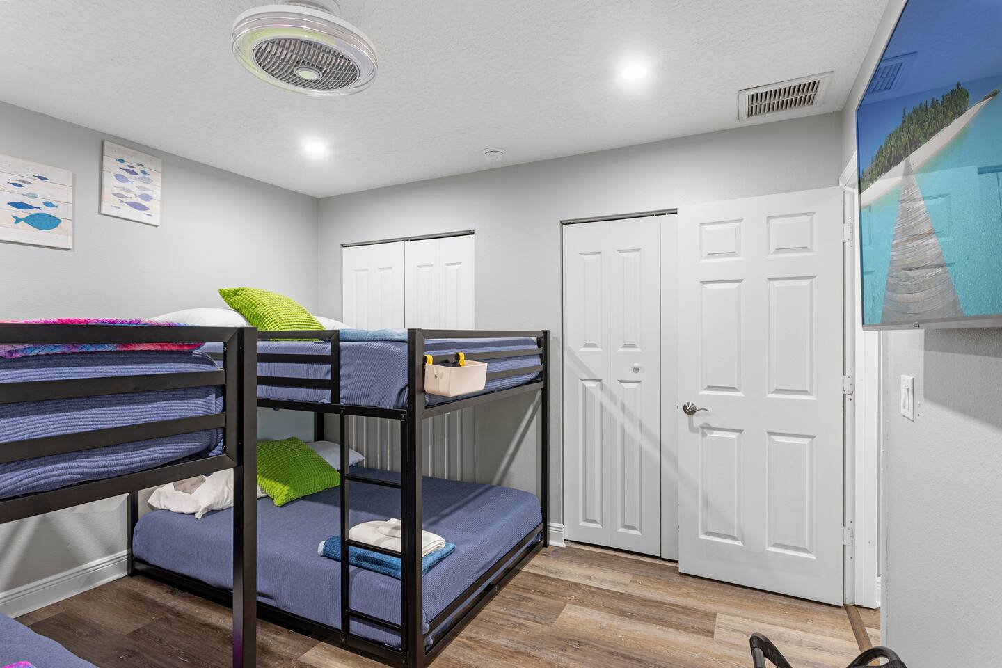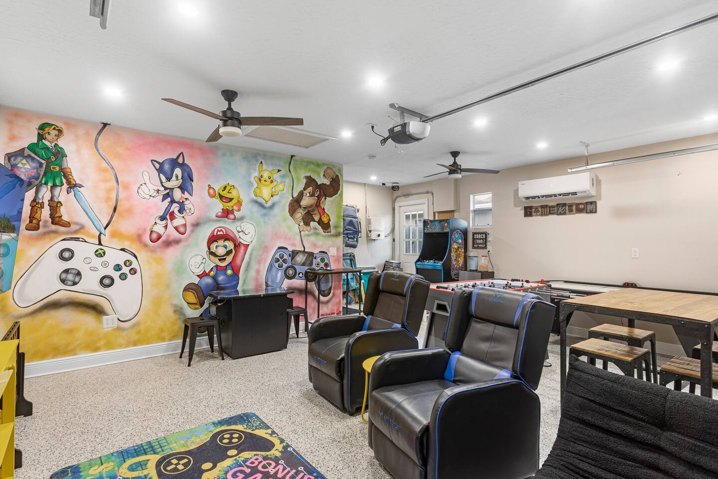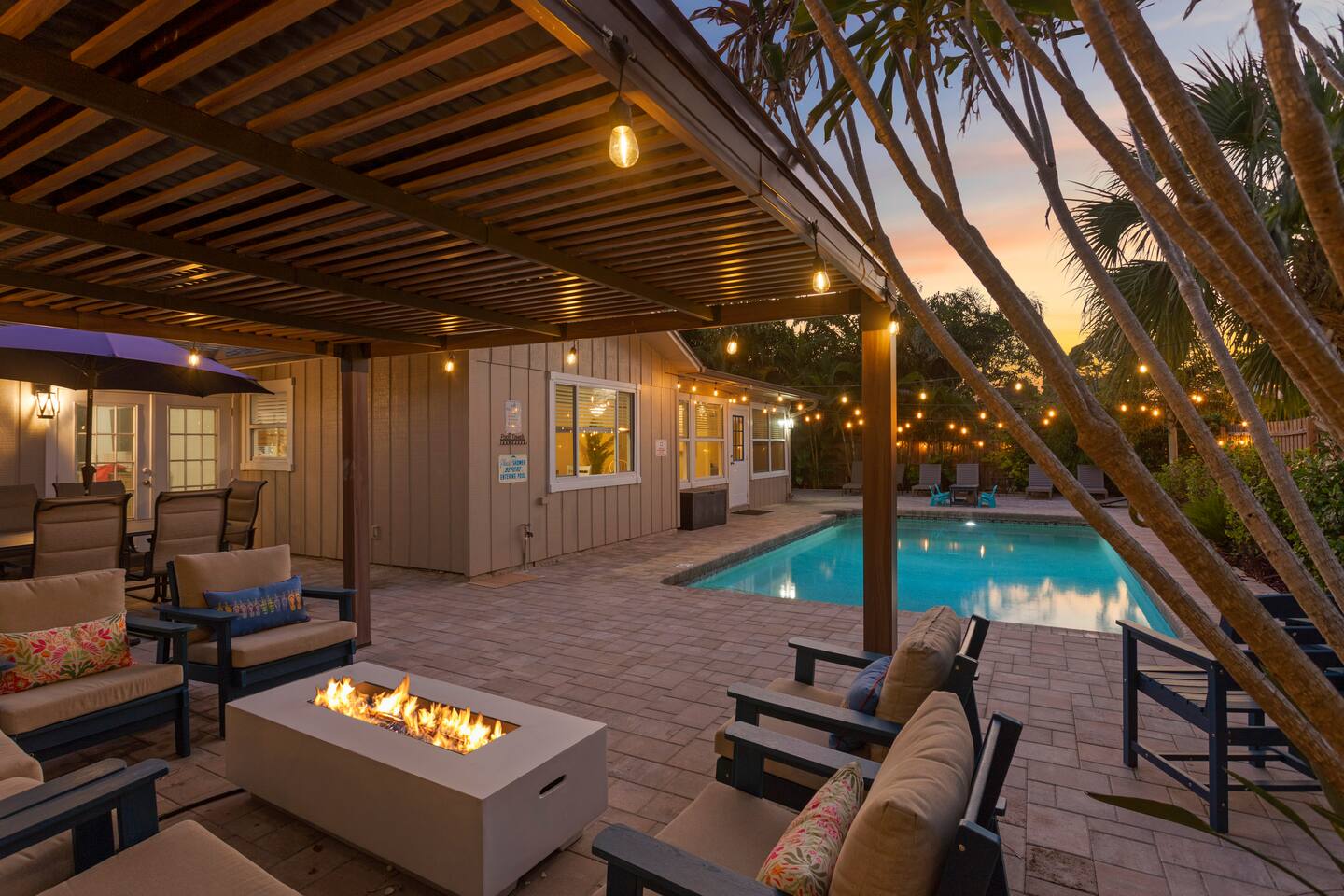 ☀ Why You'll Love It ✔ 10 minutes to Bradenton & Manatee Public Beaches ✔ 11 minutes to IMG Academy & Robinson Preserve ✔ FREE heated private pool (87 degrees) in a tropical backyard ✔ Game room with arcade, foosball, air hockey & more ✔ Family-ready with bunk beds, baby gear, and outdoor games 3 minutes from GT Bray Park with covered pickleball courts and multiple playgrounds. 🛏 Bedrooms (Sleeps 14) Perfect for families or multi-family groups: Bedroom 1 (Master Suite) – King bed + ensuite bath Bedroom 2 – King bed Bedroom 3 – Queen bed Bedroom 4 – 2 Full-over-Full bunk beds All bedrooms feature fresh linens, smart TVs, and cozy touches to help you unwind. 🛁 Bathrooms Primary Ensuite – Walk-in shower, soaking tub, dual vanities Hall Bath – Walk-in shower + vanity Both are sparkling clean and stocked with essentials. 🍽 Kitchen & Living Cook and gather with ease in the fully stocked kitchen featuring granite counters, stainless appliances, and a large island with bar seating. The open-concept layout flows into the cozy living room with plush seating and a smart TV. Bonus: Board games & family night essentials included. 🎮 Game Room Fun Beat the heat or a rainy day with endless indoor fun: Retro arcade machines Foosball & air hockey 6 smart TVs throughout home Retro Video Game System 🌴 Backyard Paradise Step outside to your own tropical oasis: FREE heated private pool Covered lounge area Gas BBQ grill Pool toys + outdoor games (ping pong, cornhole, giant checkers, giant beer pong) Plenty of space to soak up the Florida sun or relax in the shade. 🏖 Beach-Ready You're just 10 minutes from some of the best beaches in Florida! To make beach days easy, we provide: Beach chairs Towels Umbrella Cooler Wagon 👶 Traveling with Kids? We’ve got your little ones covered: (2) Pack ‘n Plays Stroller (2) High chairs Sippy cups & kids dinnerware Full-over-full bunk beds = built-in fun 🚗 Parking & Access Free driveway parking for up to 4 vehicles Self check-in with smart lock Ring doorbell camera for your security 📍 Location Located in a quiet, friendly neighborhood just minutes to top restaurants, golf, shopping, and attractions like IMG Academy and Robinson Nature Preserve. Pet Fee $85/pet Ready to Book? Whether you’re planning a beach getaway, family reunion, or sports tournament stay, this home is your perfect launchpad for sunshine and memories. ★ Book your stay today and start relaxing tomorrow!