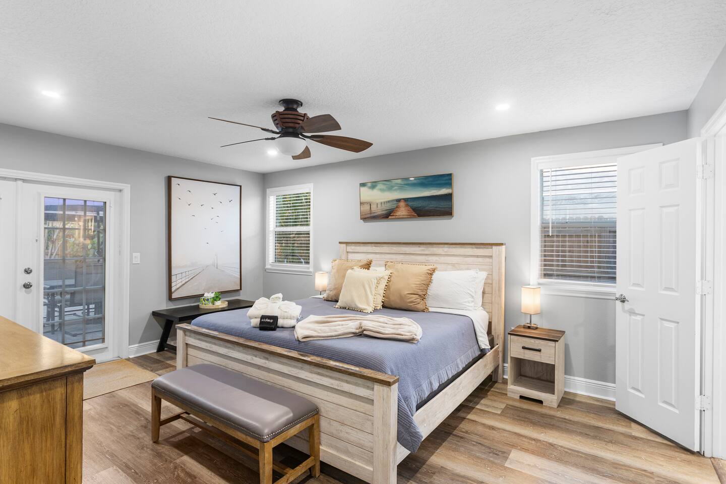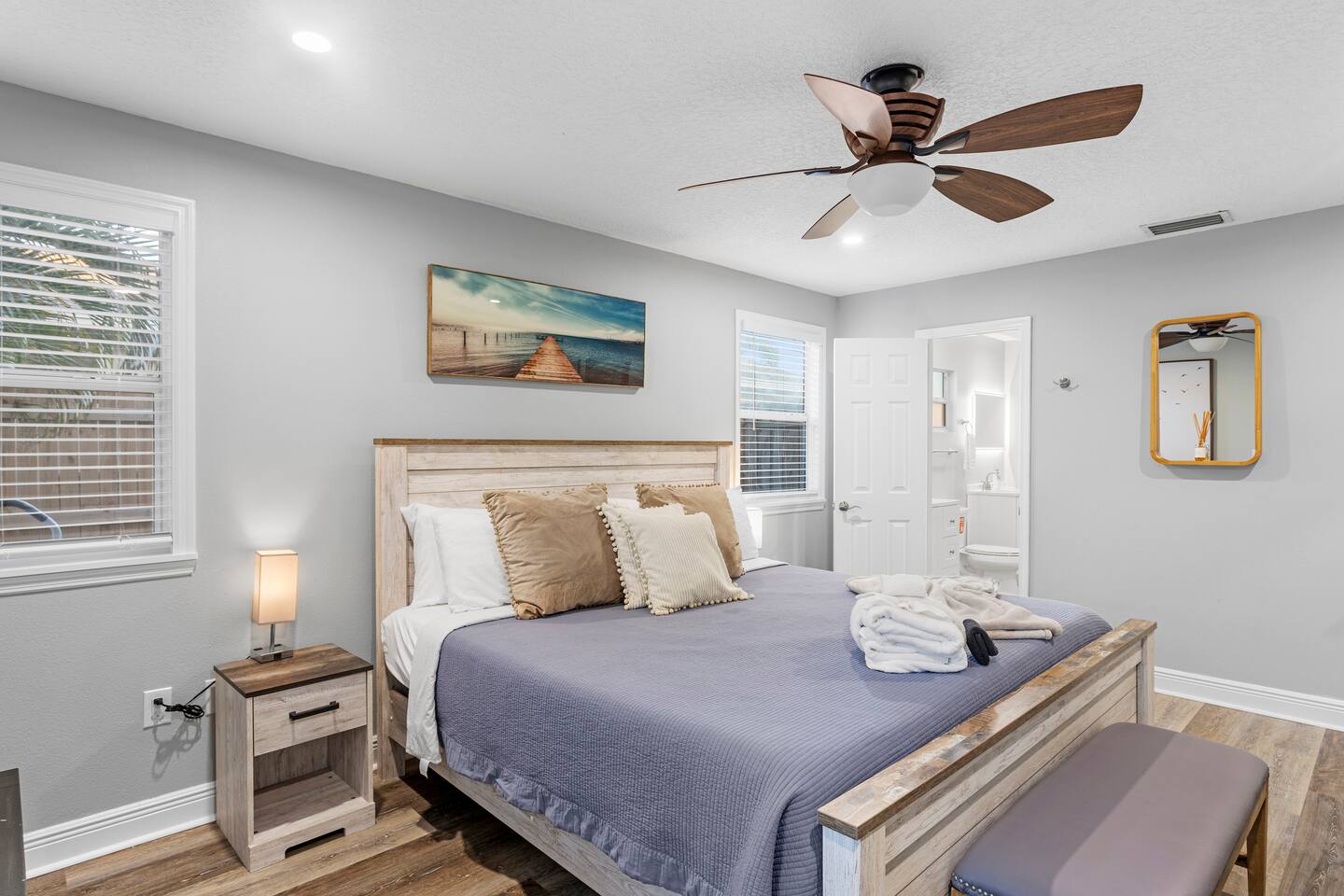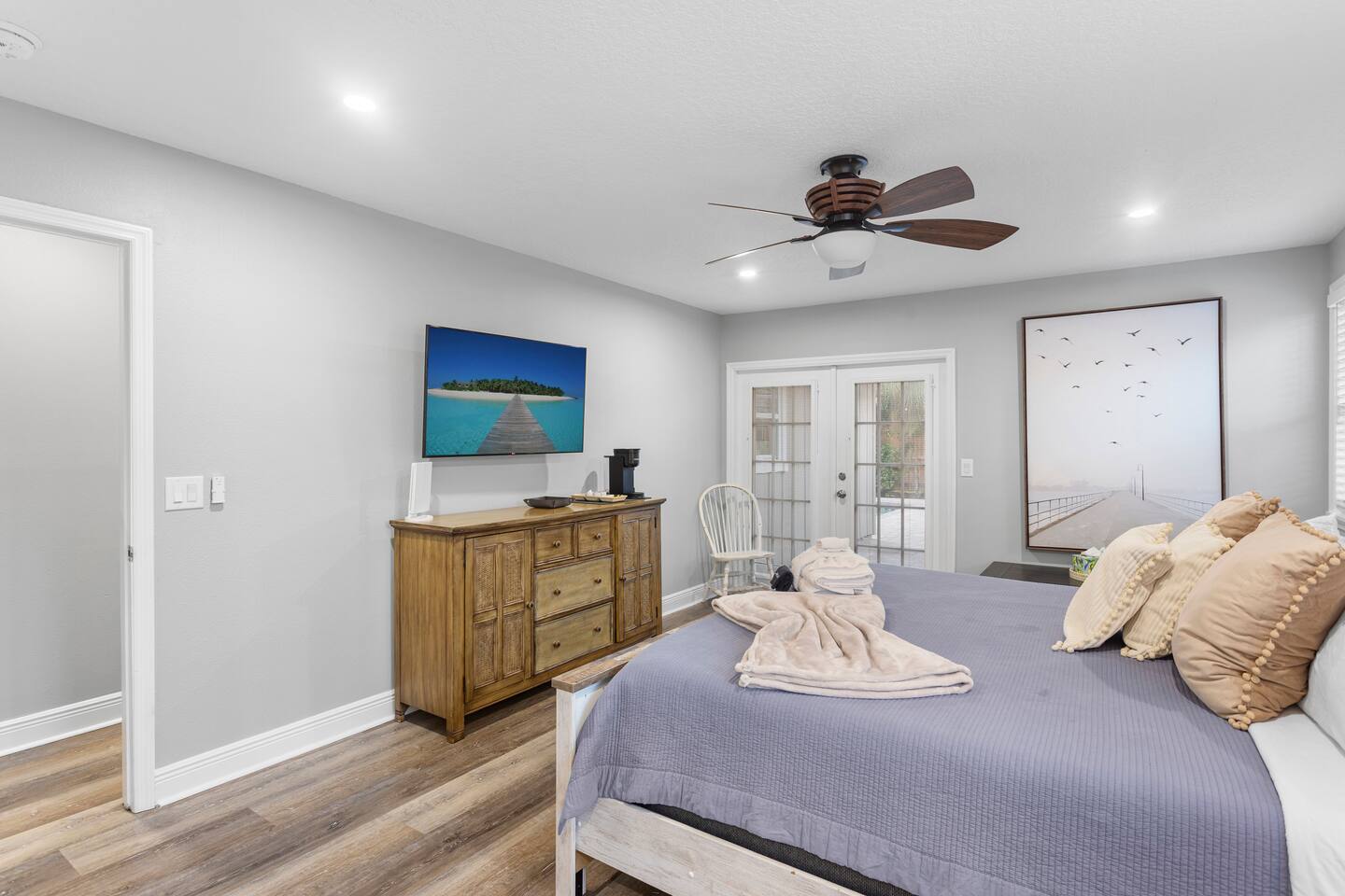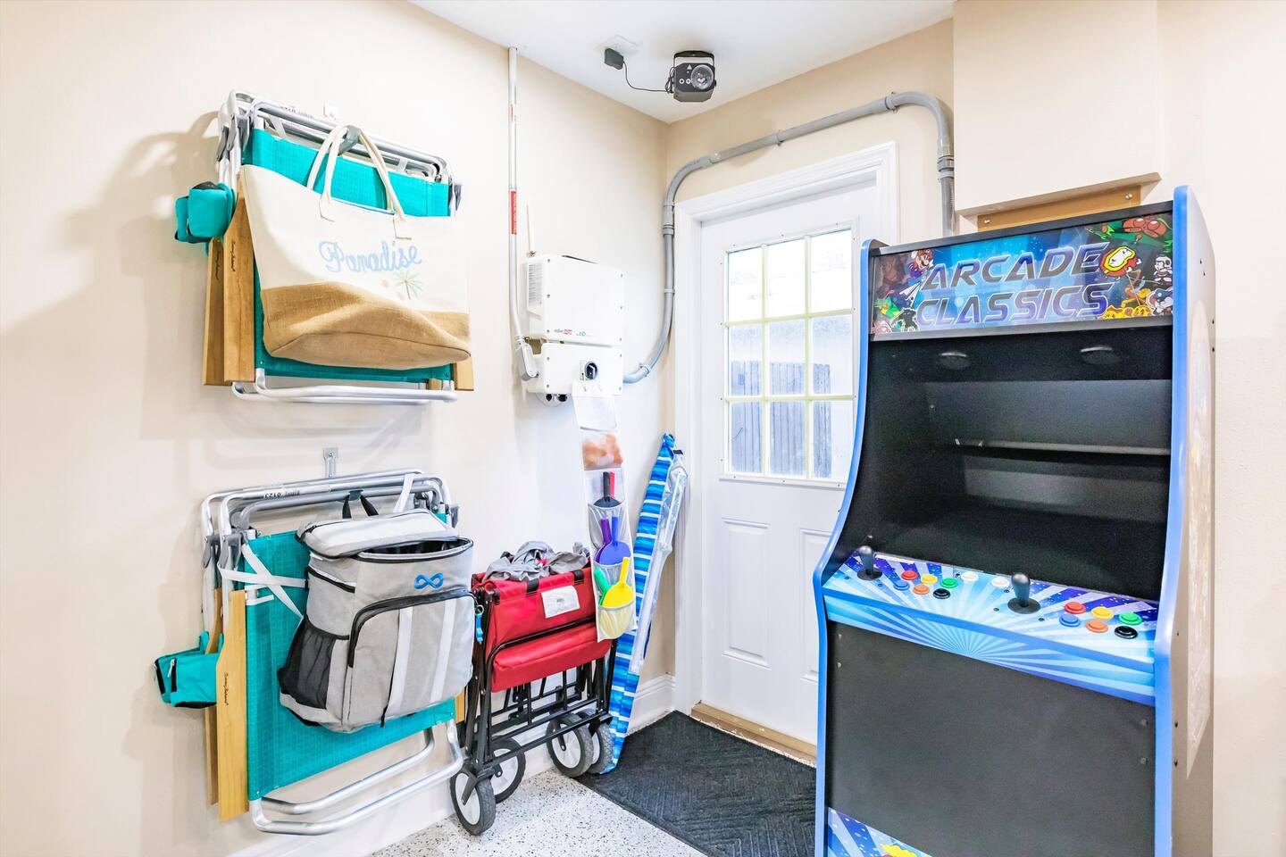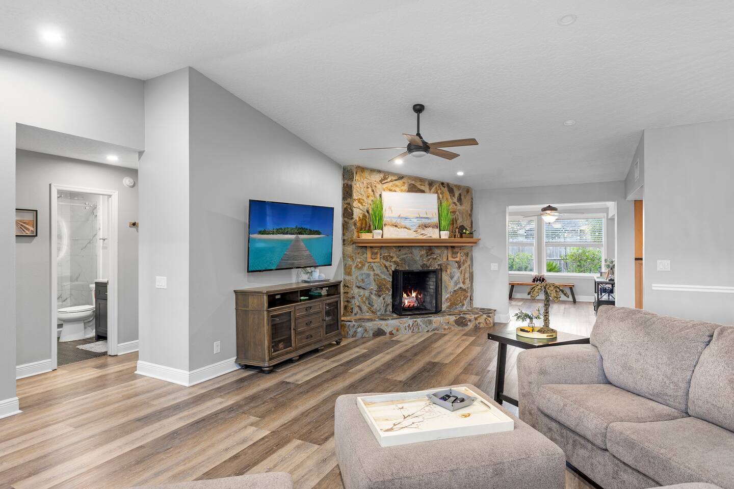 ☀ Why You'll Love It ✔ 10 minutes to Bradenton & Manatee Public Beaches ✔ 11 minutes to IMG Academy & Robinson Preserve ✔ FREE heated private pool (87 degrees) in a tropical backyard ✔ Game room with arcade, foosball, air hockey & more ✔ Family-ready with bunk beds, baby gear, and outdoor games 3 minutes from GT Bray Park with covered pickleball courts and multiple playgrounds. 🛏 Bedrooms (Sleeps 14) Perfect for families or multi-family groups: Bedroom 1 (Master Suite) – King bed + ensuite bath Bedroom 2 – King bed Bedroom 3 – Queen bed Bedroom 4 – 2 Full-over-Full bunk beds All bedrooms feature fresh linens, smart TVs, and cozy touches to help you unwind. 🛁 Bathrooms Primary Ensuite – Walk-in shower, soaking tub, dual vanities Hall Bath – Walk-in shower + vanity Both are sparkling clean and stocked with essentials. 🍽 Kitchen & Living Cook and gather with ease in the fully stocked kitchen featuring granite counters, stainless appliances, and a large island with bar seating. The open-concept layout flows into the cozy living room with plush seating and a smart TV. Bonus: Board games & family night essentials included. 🎮 Game Room Fun Beat the heat or a rainy day with endless indoor fun: Retro arcade machines Foosball & air hockey 6 smart TVs throughout home Retro Video Game System 🌴 Backyard Paradise Step outside to your own tropical oasis: FREE heated private pool Covered lounge area Gas BBQ grill Pool toys + outdoor games (ping pong, cornhole, giant checkers, giant beer pong) Plenty of space to soak up the Florida sun or relax in the shade. 🏖 Beach-Ready You're just 10 minutes from some of the best beaches in Florida! To make beach days easy, we provide: Beach chairs Towels Umbrella Cooler Wagon 👶 Traveling with Kids? We’ve got your little ones covered: (2) Pack ‘n Plays Stroller (2) High chairs Sippy cups & kids dinnerware Full-over-full bunk beds = built-in fun 🚗 Parking & Access Free driveway parking for up to 4 vehicles Self check-in with smart lock Ring doorbell camera for your security 📍 Location Located in a quiet, friendly neighborhood just minutes to top restaurants, golf, shopping, and attractions like IMG Academy and Robinson Nature Preserve. Pet Fee $85/pet Ready to Book? Whether you’re planning a beach getaway, family reunion, or sports tournament stay, this home is your perfect launchpad for sunshine and memories. ★ Book your stay today and start relaxing tomorrow!