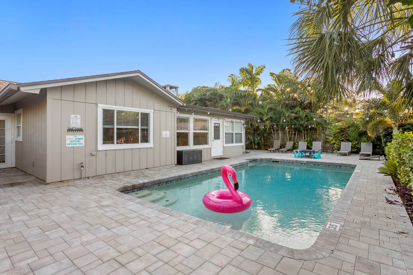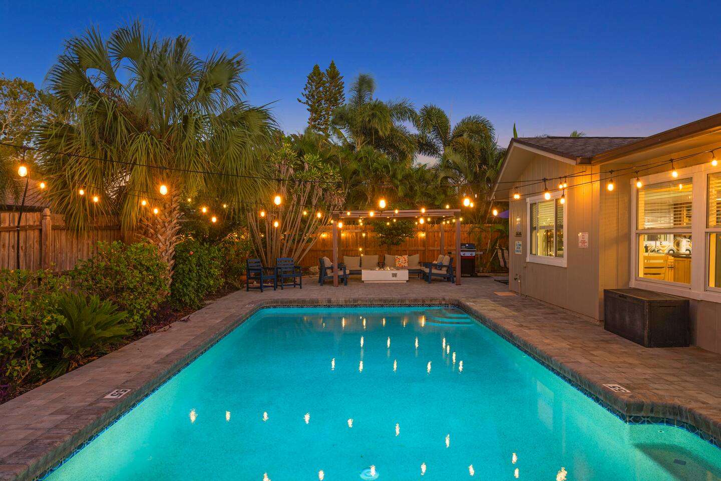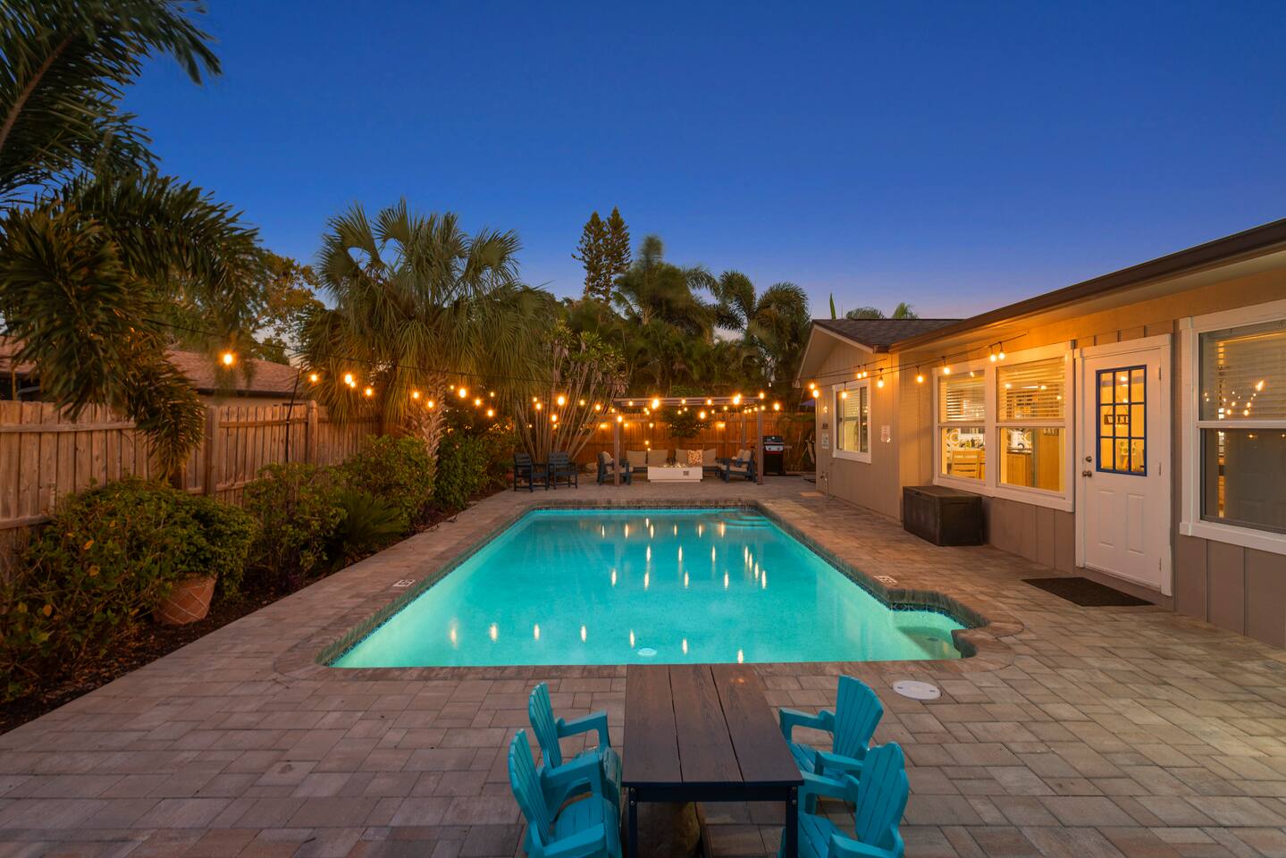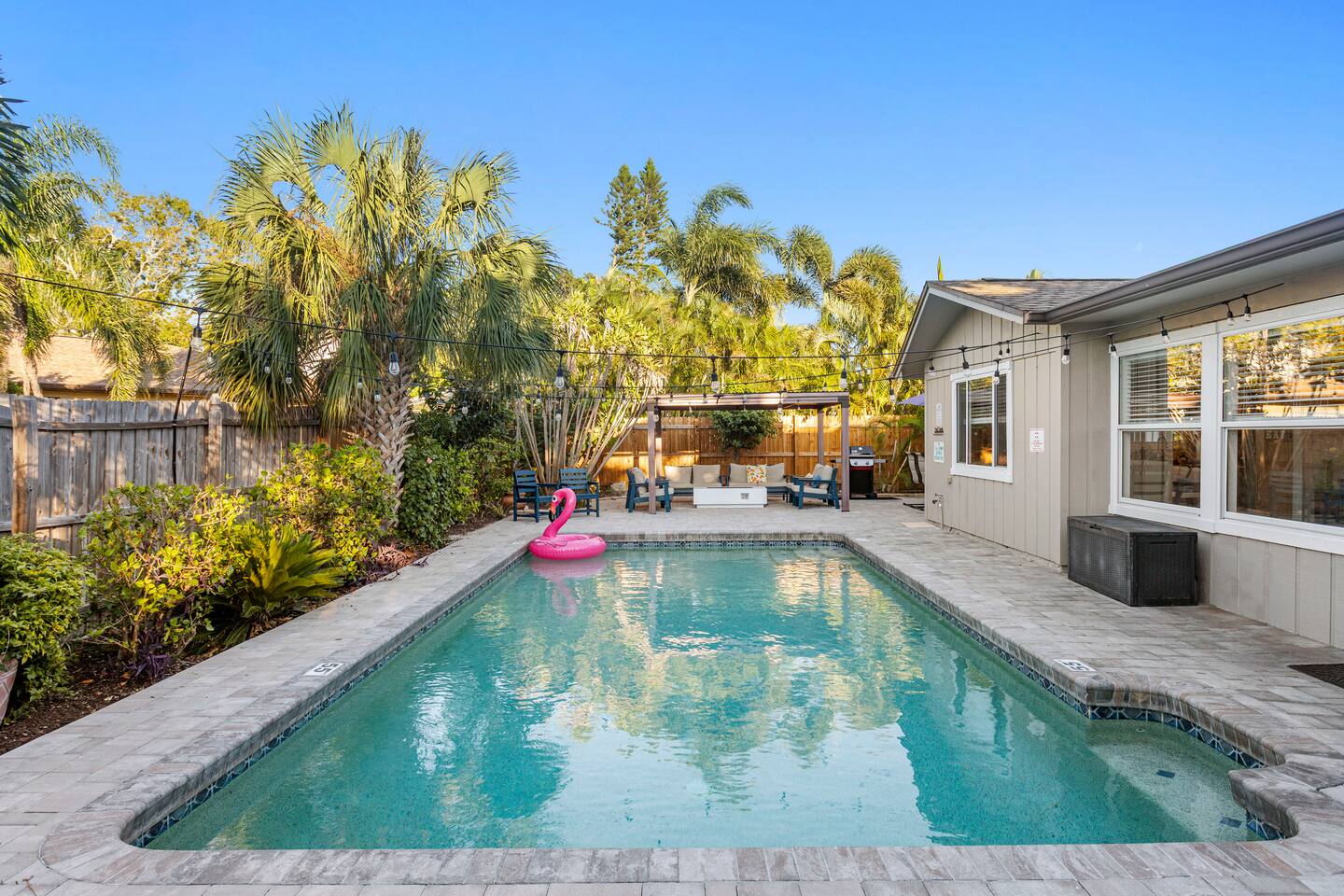 Unwind in your private heated pool, compete in the arcade-style game room and reach Anna Maria Island beaches or IMG Academy in minutes. Inside, four spacious bedrooms sleep your whole crew comfortably while the open kitchen keeps everyone connected. Heated pool Full game room: arcade, foosball & board games Smart TVs, fast Wi-Fi, washer/dryer Family gear: high chair, pack ’n play Ready for sunshine? Book your dates now before they’re gone!