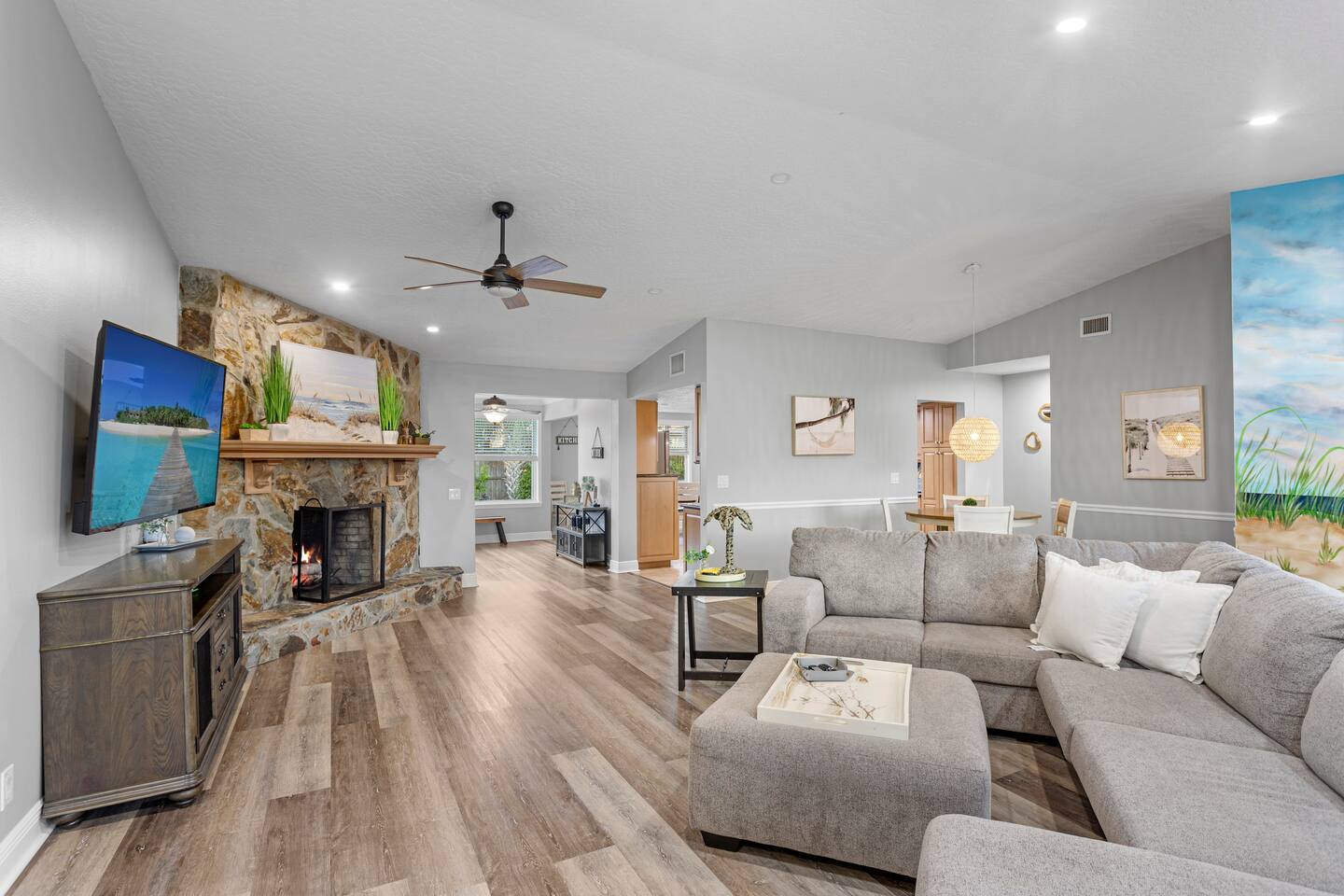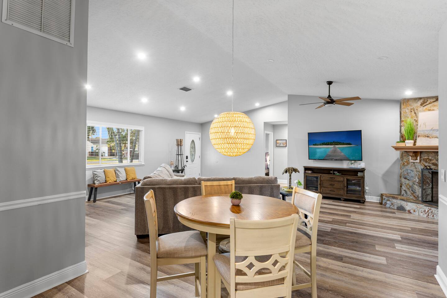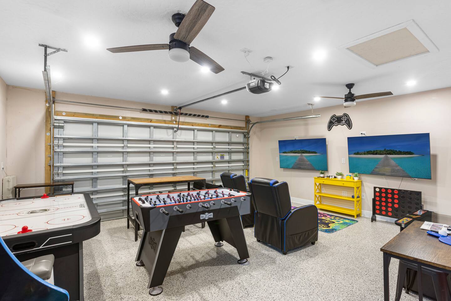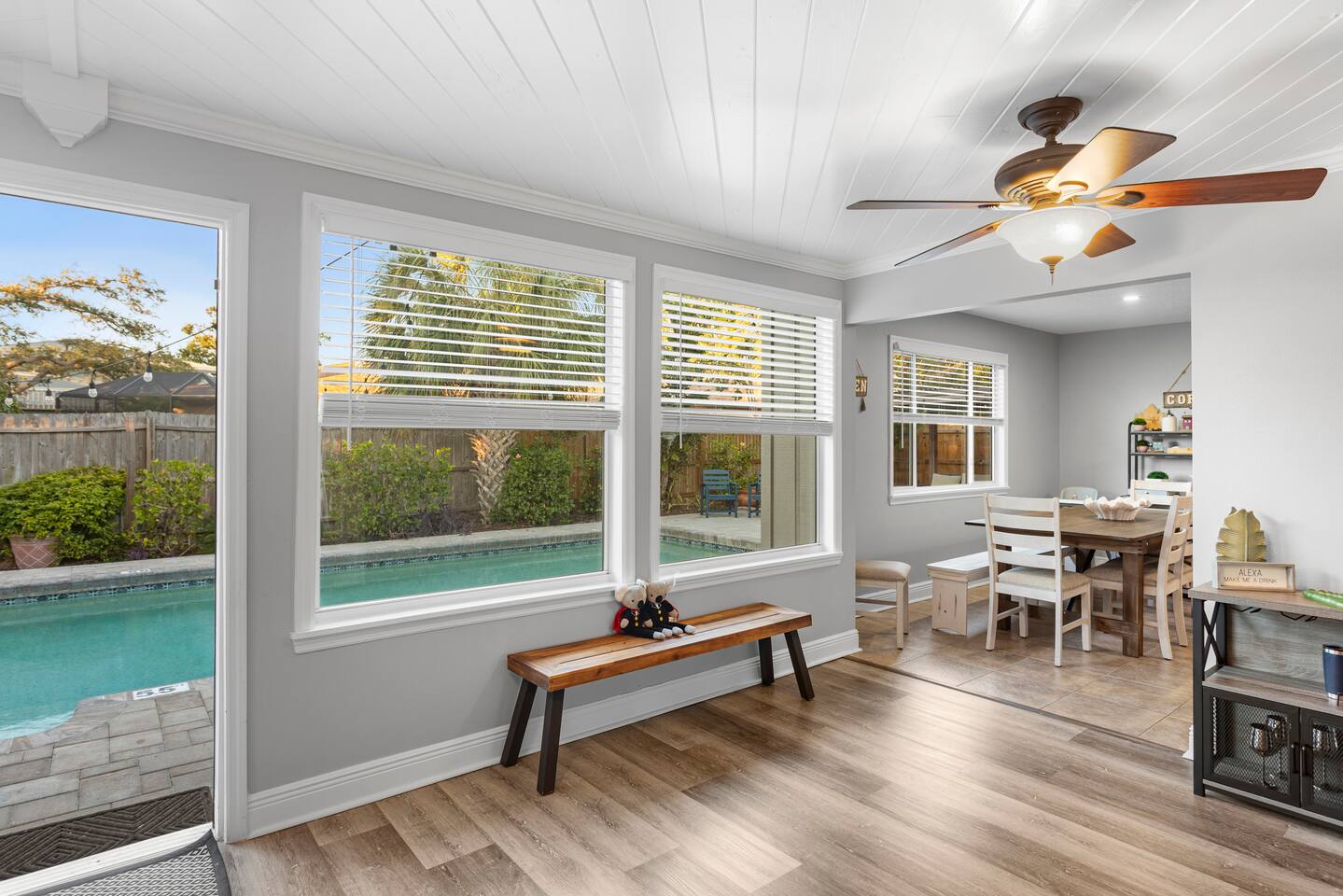 Unwind in your private heated pool, compete in the arcade-style game room and reach Anna Maria Island beaches or IMG Academy in minutes. Inside, four spacious bedrooms sleep your whole crew comfortably while the open kitchen keeps everyone connected. Heated pool Full game room: arcade, foosball & board games Smart TVs, fast Wi-Fi, washer/dryer Family gear: high chair, pack ’n play Ready for sunshine? Book your dates now before they’re gone!